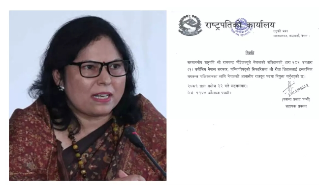 काठमाण्डौ,नेपाल – विदेश मामलों की संयुक्त सचिव रीता धीताल को पाकिस्तान में नेपाली राजदूत के रूप में नियुक्त किया गया है।