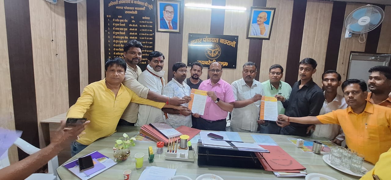 रायबरेली। अखिल भारतीय उद्योग व्यापार मंडल बछरावां अध्यक्ष ओमिक सोनी एवं उत्तर प्रदेश युवा उद्योग व्यापार मंडल प्रदेश उपाध्यक्ष चंद्र प्रकाश गुप्ता के नेतृत्व में नगर पंचायत अध्यक्ष एवं अधिशासी अधिकारी बछरावां को नगर पंचायत द्वारा त्योहार के मौके पर चलाए जाने वाले अतिक्रमण अभियान को लेकर ज्ञापन दिया गया ज्ञापन में कहा गया कि त्योहारों के मौसम को देखते हुए इस अभियान को त्यौहार तक स्थगित किया जाए , विधानसभा प्रभारी गौरव बाबा ने कहा कि त्योहारों में थोड़ा बहुत व्यापारी दुकानों को आगे करके व्यापार के लिए दुकान लगाता है,जैसे ही त्योहार और सहालग का मौसम खत्म होगा व्यापार मंडल स्वेच्छा से बड़े हुए अतिक्रमण को हटाने की व्यापारियों से अपील करेगा, इस मौके पर वरिष्ठ संरक्षक सत्य सोनी जी महामंत्री अमित वर्मा महामंत्री अंजनी गुप्ता कोषाध्यक्ष सतीश सोनकर वरिष्ठ उपाध्यक्ष पंकज सिंह उपाध्यक्ष भूपेश कुशवाहा संगठन मंत्री सत्रोहन वर्मा युवा अध्यक्ष अखिलेश चौधरी जी वरिष्ठ उपाध्यक्ष युवा राकेश सोनी वरिष्ठ महामंत्री अनूप वर्मा महामंत्री संदीप मौर्य रोहित वैश्य राहुल वर्मा राजू कुशवाहा दुर्गा द्विवेदी और स्वयं में सहित संगठन के तमाम पदाधिकारी मौजूद रहे