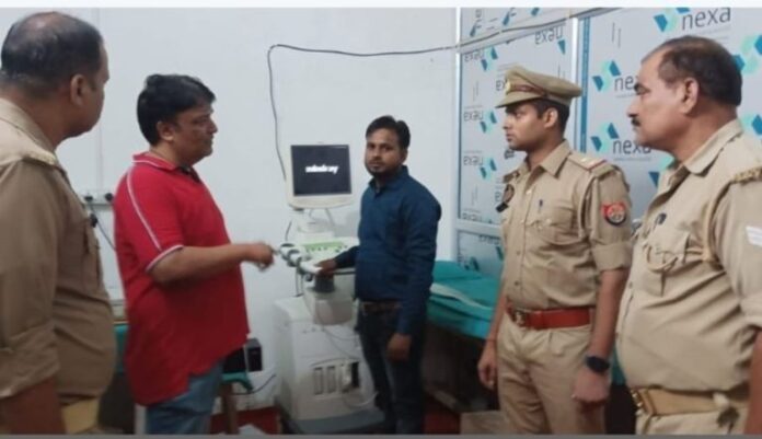 महराजगंज। महराजगंज जनपद के ,थाना श्यामदेउरवा अन्तर्गत कतरारी देशी शराब भठ्ठी के बगल में एक अवैध अल्ट्रासाउंड सेंटर को स्वास्थ्य विभाग की टीम सील कर दिया। बता दें कि क्षेत्र में अवैध अल्ट्रासाउंड सेंटर संचालित होने की शिकायत डीएम को मिली थी। जिलाधिकारी के आदेश पर डिप्टी सीएमओ डॉ. राजेश द्विवेदी और श्यामदेउरवा पुलिस टीम ने रविवार को दिन करीब 11 बजे बिना नाम के संचालित हो रहे डायग्नोस्टिक सेंटर में छापा डाला। इस दौरान अल्ट्रासाउंड मशीन अवैध रूप से संचालित होते हुए मिला।