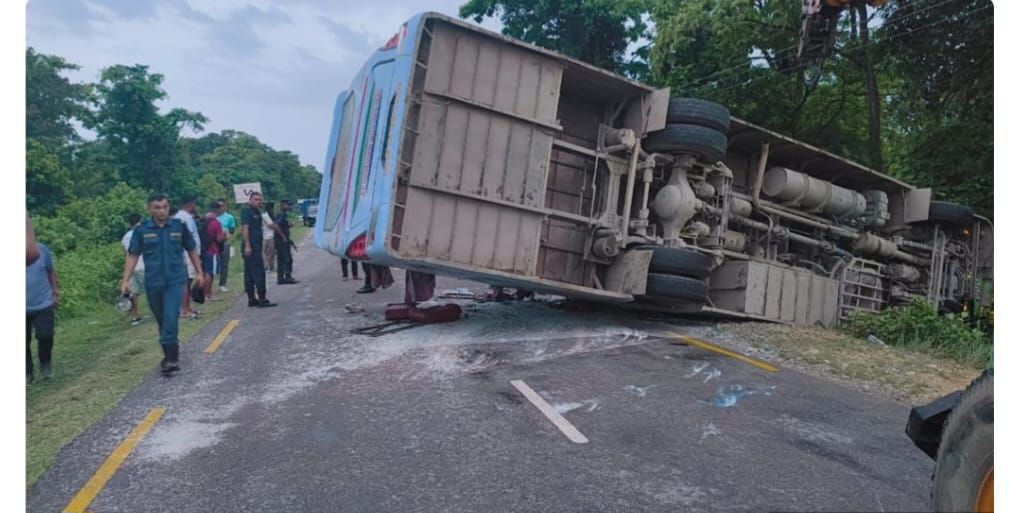 कपिलवस्तु जिला पुलिस कार्यालय के सूचना अधिकारी और पुलिस उपाधीक्षक (डीएसपी) मोहन मणि अधिकारी ने बताया कि काठमाण्डौ से दांग जा रही लुम्बिनी प्रांत 02-001 खा 0045 नंबर की बस आज सुबह करीब 4 बजे दुर्घटनाग्रस्त हो गई।