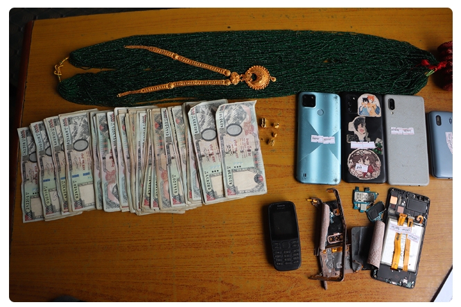 उनके पास से 39.44 ग्राम विकृत सोना, 120,000 नकद और 6 मोबाइल फोन बरामद किए गए। गिरफ्तार लोगों को कार्रवाई के लिए जिला पुलिस परिसर काठमाण्डौ भेज दिया गया है।
