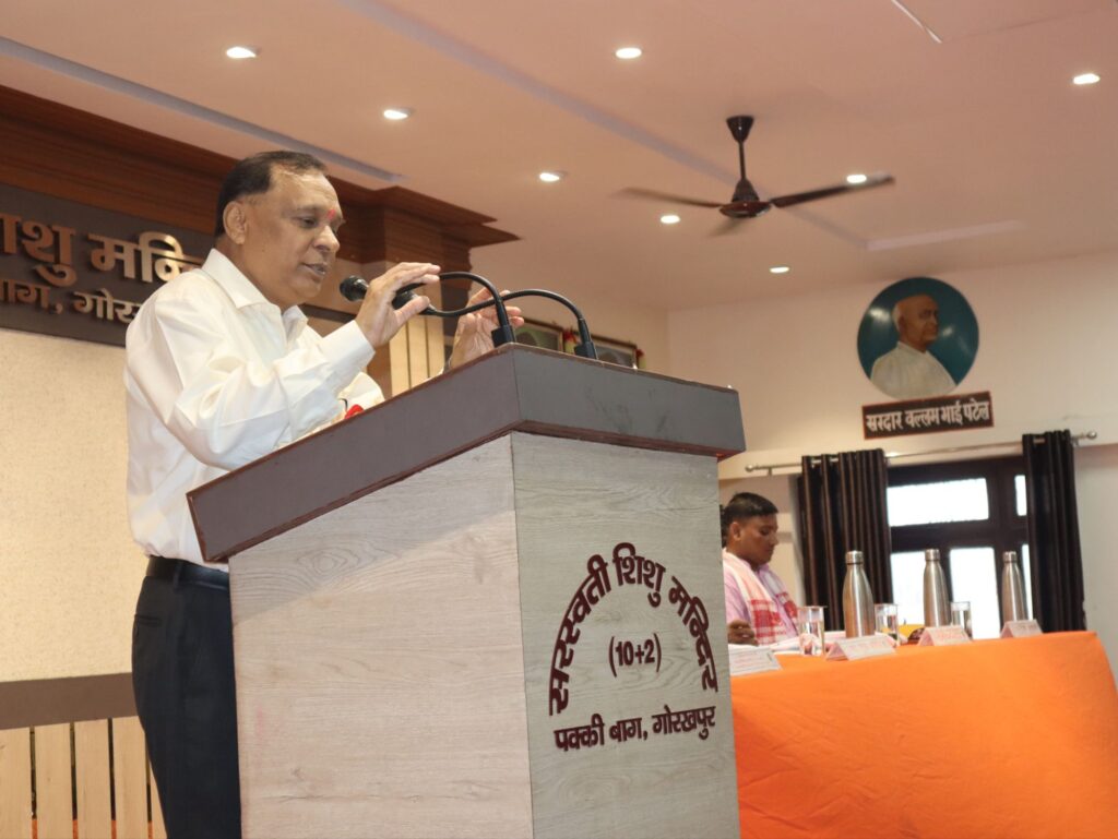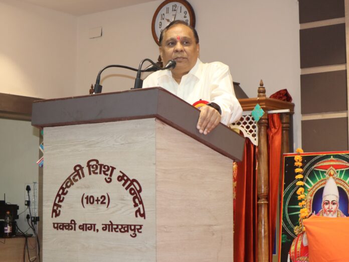 सरस्वती शिशु मंदिर (10+2)पक्की बाग गोरखपुर में आज वंदना सभा में व्यास पूजा कार्यक्रम भारतीय शिक्षण मंडल द्वारा आयोजित किया गया। इस अवसर पर भारतीय शिक्षण मंडल गोरक्ष प्रांत के प्रांत अध्यक्ष और मदन मोहन मालवीय प्रौद्योगिकी विश्वविद्यालय गोरखपुर के कुलगुरु (कुलपति) प्रोफेसर जे पी सैनी मुख्य वक्ता के रूप में उपस्थित रहे। उन्होंने इस अवसर पर गुरु की महत्ता बताते हुए अपने विचार रखें l गुरु जीवन जीने की कला सिखाता है। गुरु की महिमा गुरु शब्द में निहित है। उन्होंने बताया कि ईश्वर के रूठने पर गुरु अपनी शरण में ले लेंगे लेकिन गुरु के रूठने पर ईश्वर अपनी शरण में नहीं लेंगे। गुरु के मार्ग पर चलना ही गुरु दक्षिणा है । पूरे ब्रह्मांड में गुरु ही एक व्यक्ति हैं जो अपने शिष्य की सफलता पर प्रसन्न होते हैं। गुरु अपने शिष्य को उपलब्धि को अपनी स्वयं की उपलब्धि मानते हैं। गुरु केवल धार्मिक मार्ग की ओर नहीं ले जाते बल्कि ज्ञान रूपी सरोवर में ले जाते हैं। उन्होंने कहा कि जीवन के लिए हम माता-पिता के ऋणी है ।तो जीवन में आने वाली हर कठिनाइयों और मुश्किलों का सामना करने के लिए गुरु के ऋणी है।