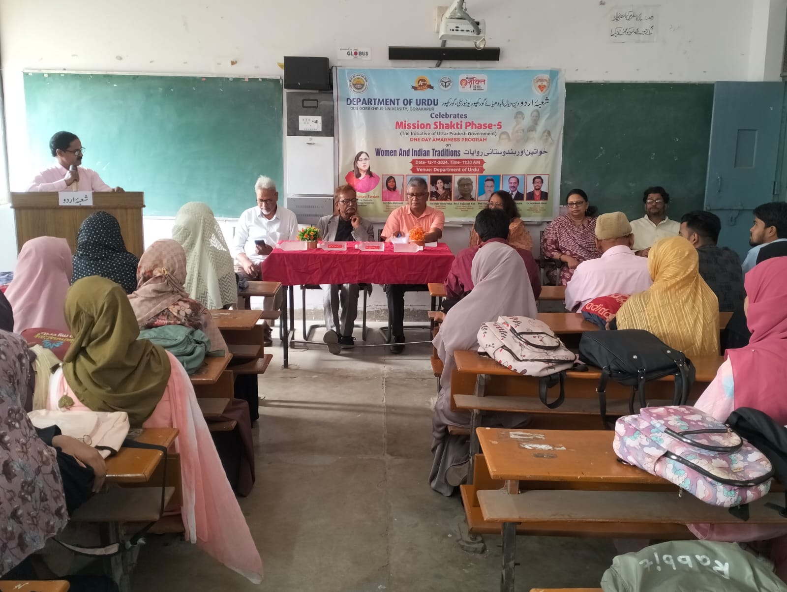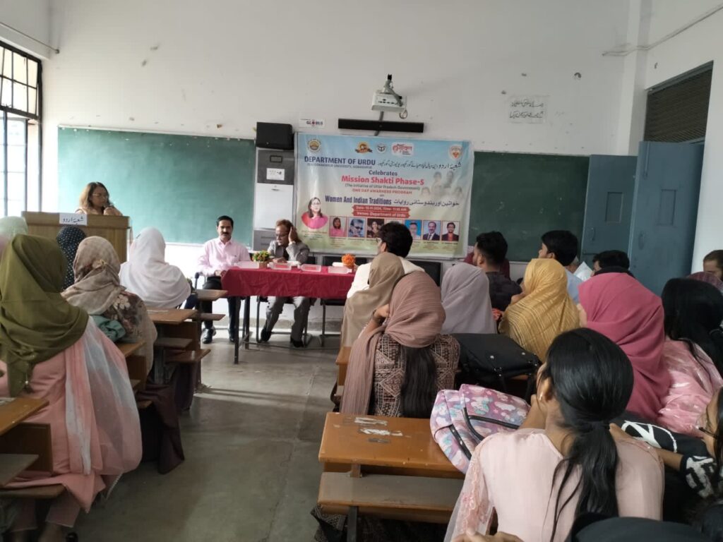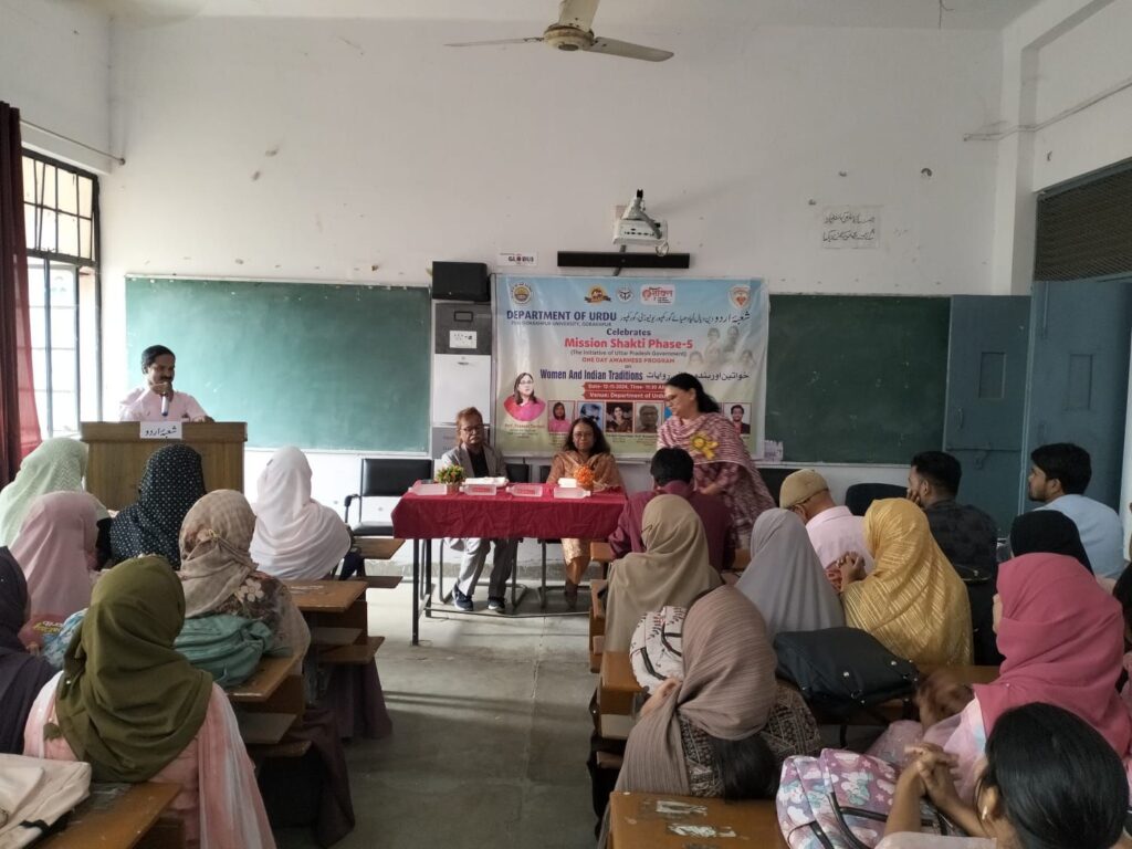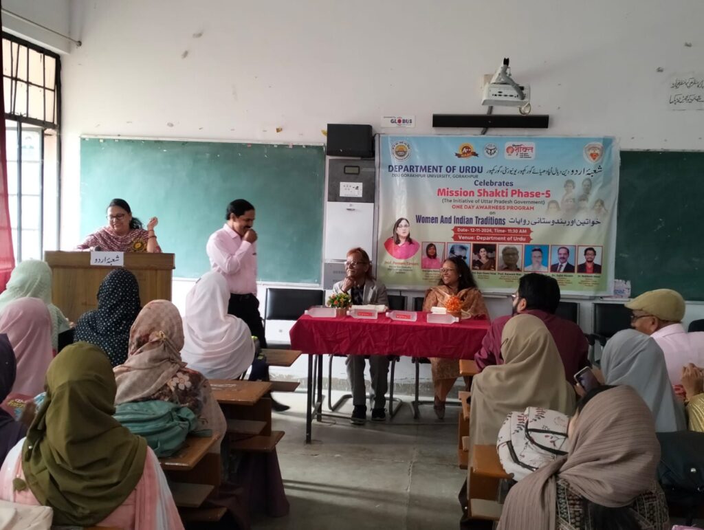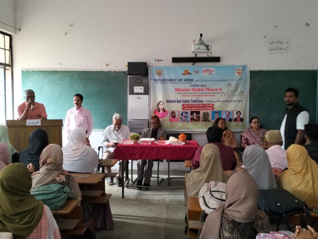दीन दयाल उपाध्याय गोरखपुर विश्वविद्यालय के उर्दू विभाग में 12 नवंबर को मिशन शक्ति के अंतर्गत “महिला एवं भारतीय परंपरा” के विषय पर एक विशिष्ट व्याख्यान का आयोजन किया गया। इस आयोजन की अध्यक्षता अधिष्ठाता, कला संकाय प्रो राजवंत राव ने की। इस आयोजन की मुख्य वक्ता उर्दू विभाग, गणपत सहाय पी जी कॉलेज, सुल्तानपुर की विभागाध्यक्ष प्रो. ज़ेबा महमूद और मुख्य अतिथि जाने माने रंगकर्मी और स्वतंत्र पत्रकार एहतेशाम सिद्दीकी रहे। विशिष्ट अतिथि के तौर पर अंग्रेज़ी विभाग की प्रो सुनीता मुर्मू और प्रो शिखा सिंह उपस्थित रहीं। विभाग के अध्यक्ष प्रो. एम आर रहमान ने गुलदस्ते और अंगवस्त्र से अतिथियों का स्वागत किया।