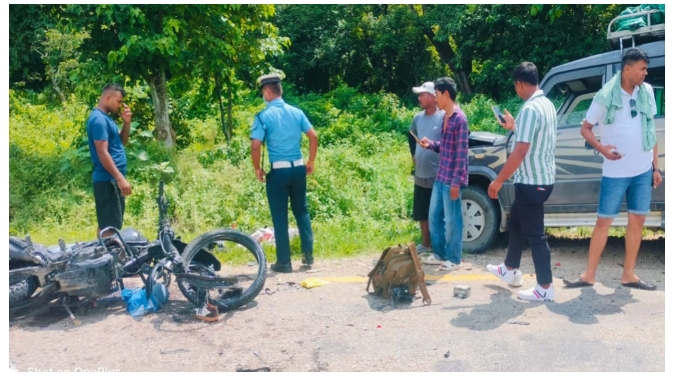 काठमाण्डौ,नेपाल। सोमवार को चंद्रपुर नगरपालिका-4 में पूर्व-पश्चिम राजमार्ग पर एक टाटा सूमो और मोटरसाइकिल की टक्कर में मोटरसाइकिल सवार दो लोगों की मौत हो गई।