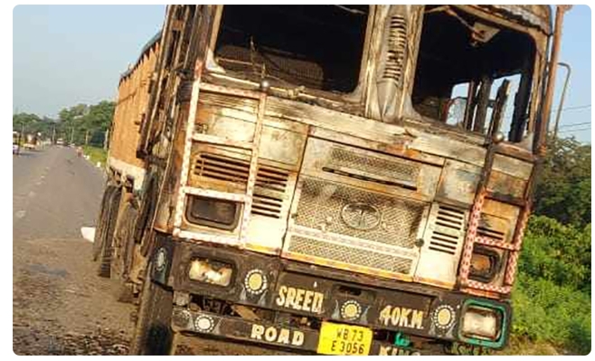 झापा में दुर्गा प्रसाई कार्यकर्ताओं ने जला दिया ट्रक। पुलिस के मुताबिक, जब ड्राइवर अंदर था तो उन्होंने पेट्रोल बम फेंका और आग लगा दी।