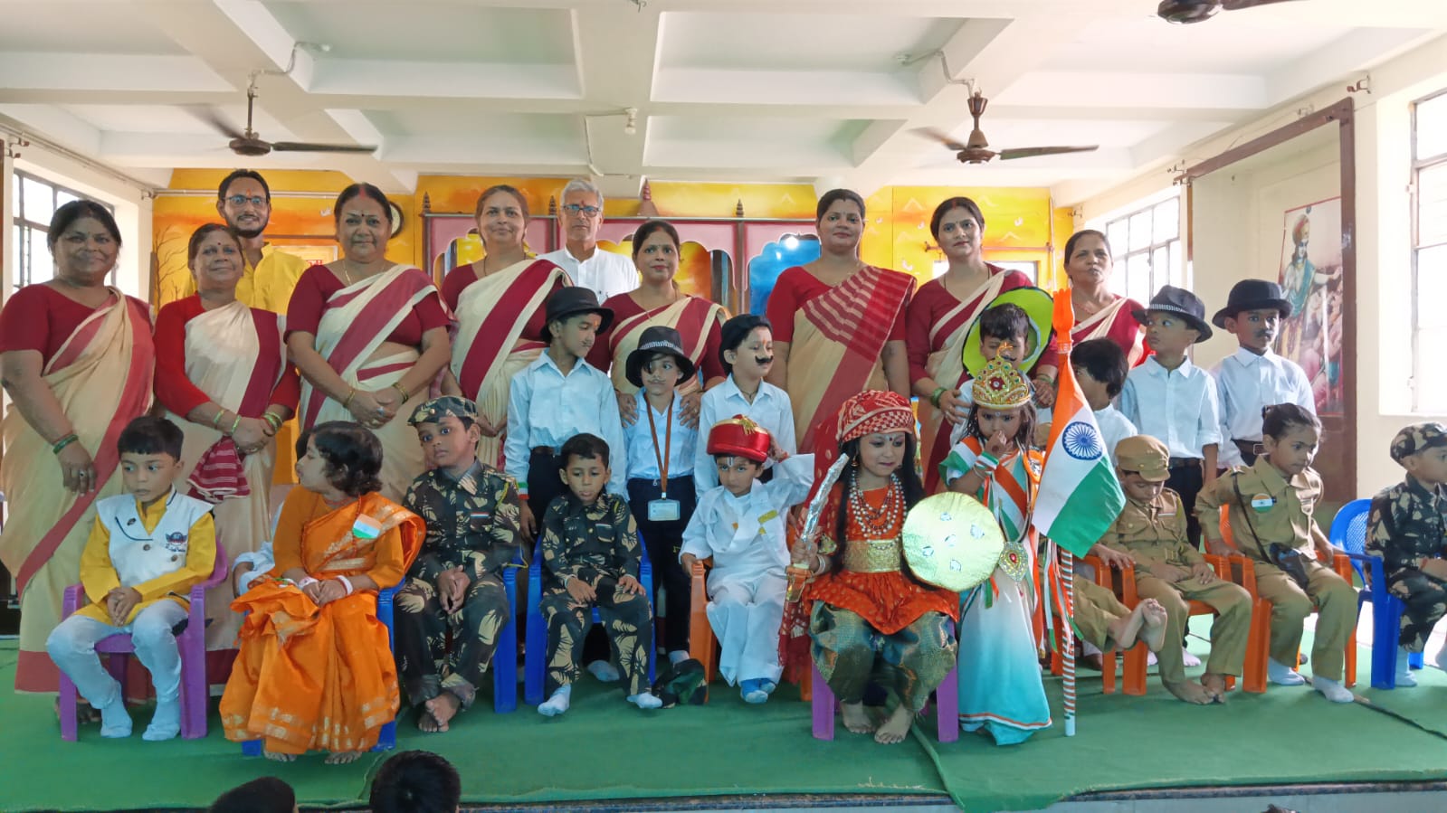 नन्हें – मुन्ने भैया – बहन क्रांतिकारियों शहीदों देशभक्तो और वीरांगनाओं के रूप में सजकर आए और उनका जीवन्त रूप प्रस्तुत किया। भैया बहनों ने बहुत से प्रेरणादायी स्लोगन देश भक्ति गीत कविताओं की भी प्रस्तुति दी।