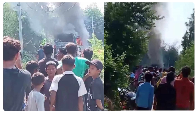 गुस्साए स्थानीय लोगों ने छात्रों की बस में आग लगा दी । डीएसपी सिंह ने बताया कि बस पूरी तरह जलकर क्षतिग्रस्त हो गयी है ।