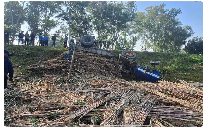 काठमाण्डौ,नेपाल – गन्ने से लदा ट्रैक्टर अनियंत्रित होकर पलटने से चालक की मौत हो गई।
