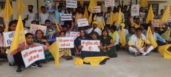 गोरखपुर। विश्व आदिवासी दिवस के अवसर पर धुरिया,गोंड समाज के हक व अधिकार के लिए पैदल मार्च करतें हुए,जिला अधिकारी कार्यालय पर विशाल धरना प्रदर्शन किया गया,जिसमें धरना प्रदर्शन मूलवासी गोंडवाना गणतंत्र संस्था के प्रदेश अध्यक्ष व वरिष्ठ छात्रनेता शिव शंकर गोंड ने नेतृव करतें हुए प्रदर्शन को सम्बोधित करतें हुए कहा कि जिला प्रशासन के साथ लगतार बैठक के बावजूद धुरिया,गोंड समाज का जाति प्रमाण पत्र निर्गत नही हो रहा हैं, जबकि मुख्यमंत्री द्वारा विशेष ध्यान देने का वक्तव्य आता हैं, वही उनके ही जिला के जिला प्रशासन द्वारा आदिवासी गोंड समाज के साथ अन्याय को स्वीकार नही किया जाएगा, अगर जल्द ही जाति प्रमाण पत्र निर्गत नही हुआ तो बड़ा आंदोलन होगा।