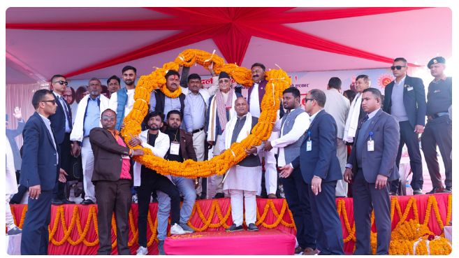 संघीय मामले एवं प्रशासन मंत्री राजकुमार गुप्ता, जो परसा जिला संख्या 3 के सांसद भी हैं, के नेतृत्व में उन्हें 80 किलो की माला से सम्मानित किया गया ।