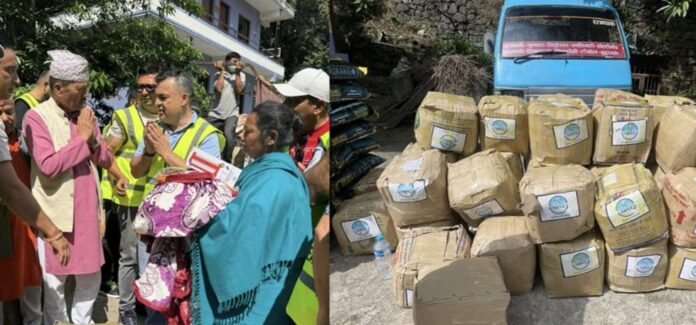 काठमांडू के दक्षिणकाली नगर पालिका क्षेत्र में बाढ़ और बाढ़ से प्रभावित लोगों को राहत वितरित करने के लिए एसोसिएशन के केंद्रीय अधिकारी और विभिन्न देशों के अनिवासी नेपाली बाढ़ प्रभावित क्षेत्रों में पहुंचे।