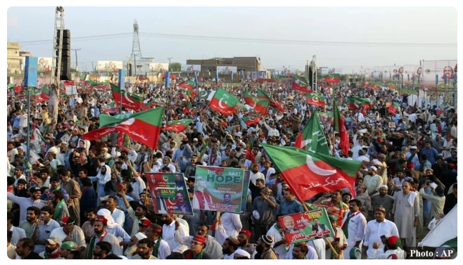 इमरान खान के नेतृत्व वाली पाकिस्तान तहरीक-ए-इंसाफ (पीटीआई) के कार्यकर्ताओं ने मार्च निकाला है और घोषणा की है कि वे इस्लामाबाद की संसद तक पहुंचेंगे ।