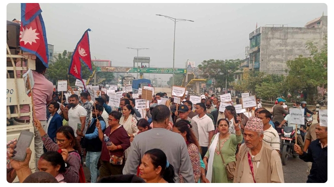 विरोध प्रदर्शन लुंबिनी रोड गेट से शुरू होकर बुद्ध चौक, बरमेली टोल होते हुए मिलन चौक तक पहुंचा ।