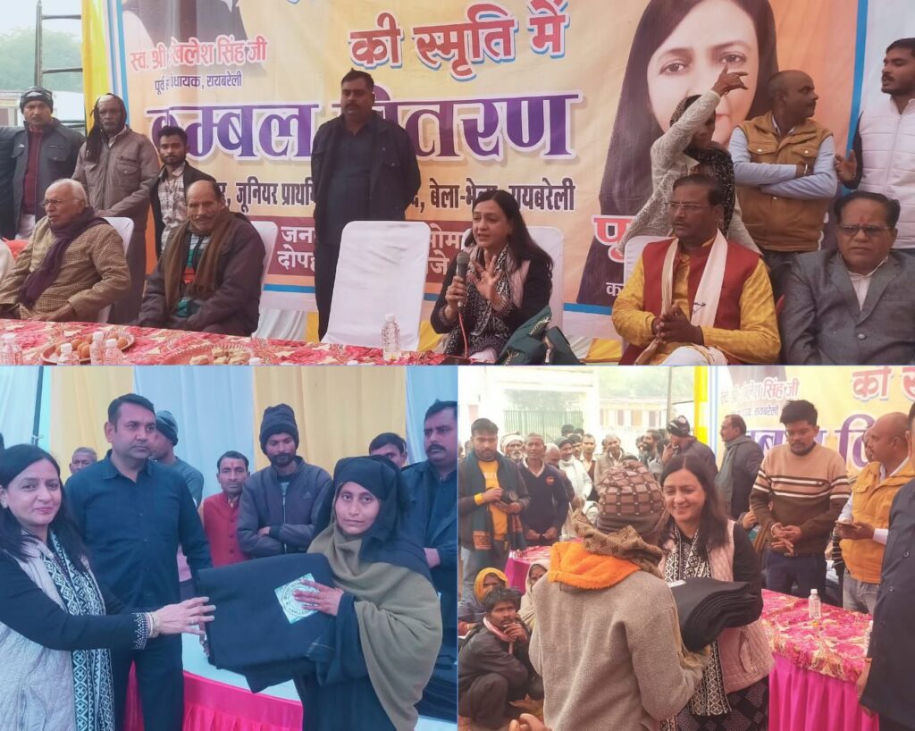 रायबरेली। पूर्व विधायक जननायक स्व. श्री अखिलेश सिंह जी की स्मृति में आज विजयनगर गांव के जूनियर प्राथमिक विद्यायल बेंद, ग्राम सभा बेला भेला, राही ब्लाक में एक विशाल कार्यक्रम आयोजित हुआ। जिसमें कमला फाउंडेशन की अध्यक्ष पूनम सिंह ने बेला भेला, उत्तर पारा, बेला खारा, बेला गुसीसी, सैदनपुर, सुलखियापुर, खागी पुर सड़वा, मुंशीगंज, कलसहा सहित अन्य ग्राम सभा के दर्जनों गांव के सैकड़ों जरूरतमंद लोगों को कम्बल वितरित किया।