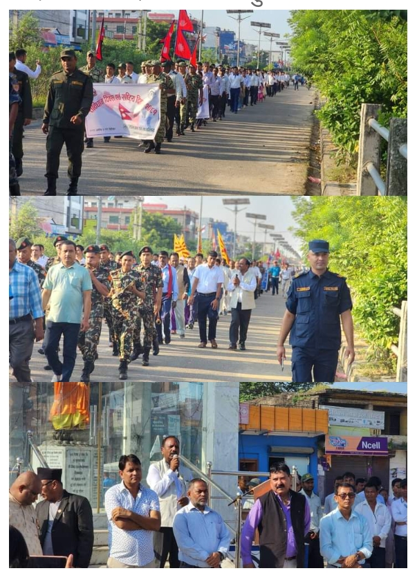 काठमाण्डौ,नेपाल। नवलपरासी। जिल्ला समन्वय समिति नवलपरासी(पश्चिम) के आयोजन में संविधान दिवस के उपलक्ष में रामग्राम नगरपालिका नगर प्रभातफेरी के साथ बुध्दचौक में शुभकामना आदानप्रदान विभिन्न जाती के सांसकृतिक कार्यक्रम के साथ मनाया गया।