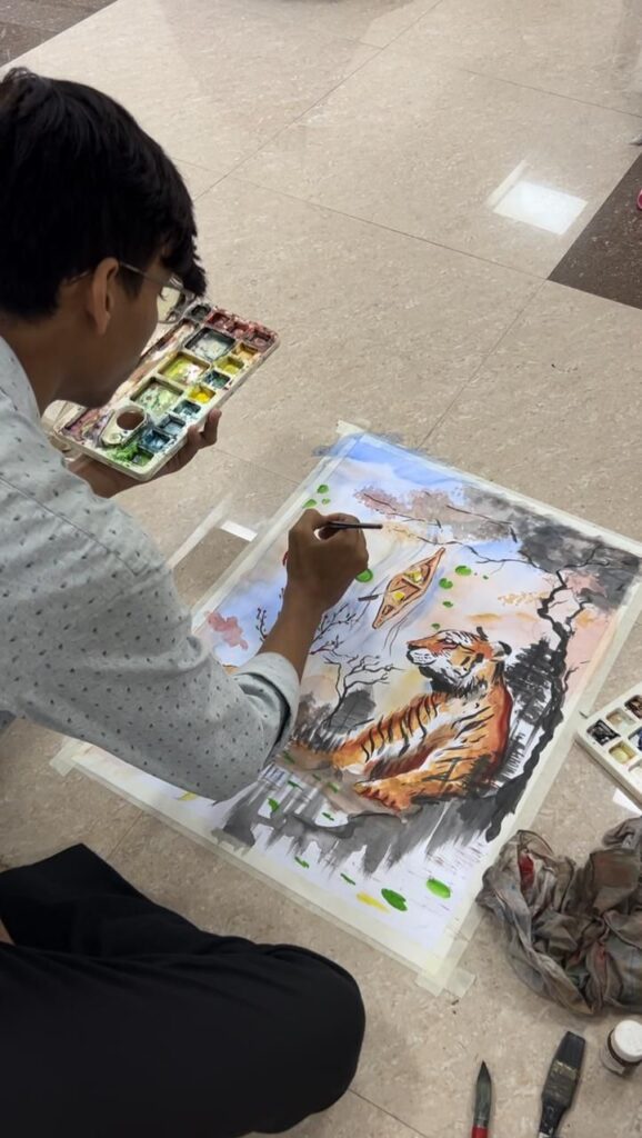 पेंटिंग का थीम वन्यजीव एवं पर्यावरण संरक्षण था।