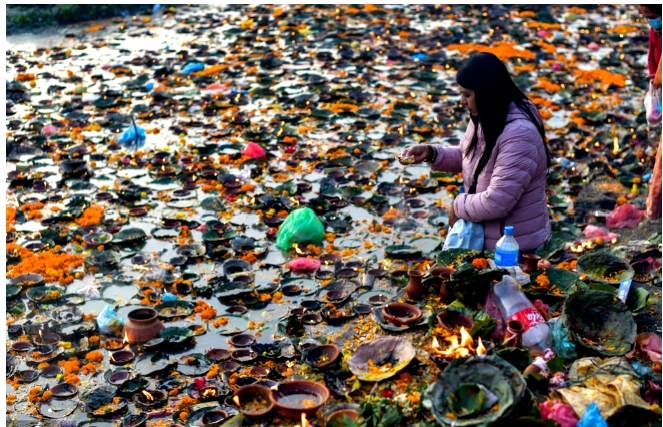 जो श्रद्धालु त्रयोदशी की शाम को अपने दिवंगत पिता के नाम पर अखंड दीप जलाकर बैठे हैं, वे सुबह वागमती नदी में दीपक जलाते हैं और चतुर्दशी की सुबह शतबीज का छिड़काव करते हैं।