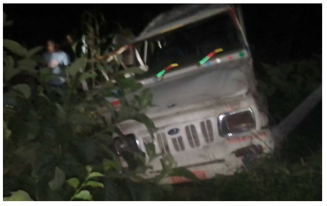 रा 1 सीएच 1043 नंबर की एक बोलेरो जीप, जो त्रिबेनी ग्रामीण नगर पालिका-4 फलाबंग से लुहम बाजार जा रही थी, पुतली दरबार के पास दुर्घटनाग्रस्त हो गई।
