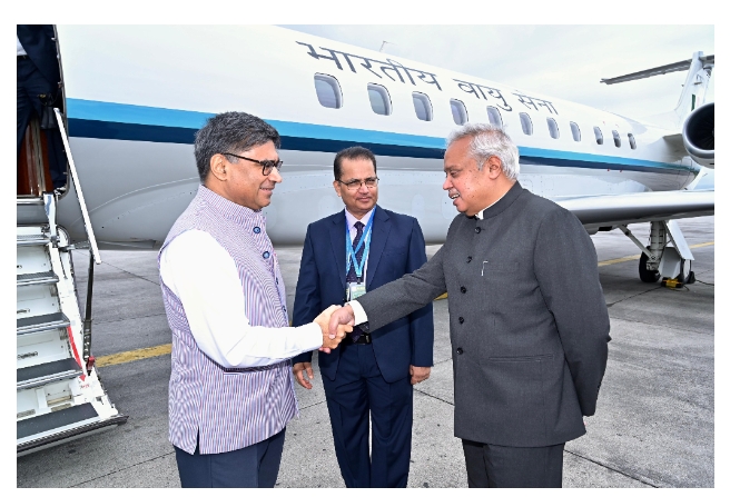 त्रिभुवन अंतर्राष्ट्रीय हवाई अड्डे पर सचिव लमसाल ने उनका स्वागत किया।