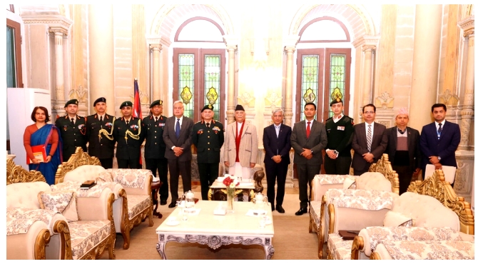 स्थल सेना प्रमुख द्विवेदी ने गुरुवार को राष्ट्रपति रामचन्द्र पौडेल से नेपाली सेना का मानद महारथी बैज प्राप्त किया।