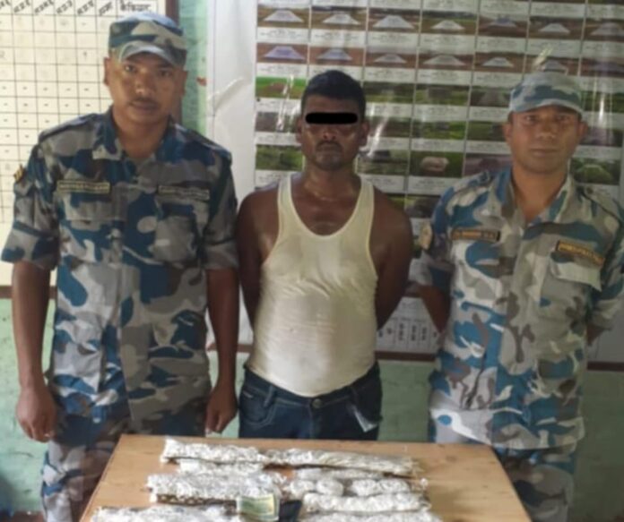 सशस्त्र पुलिस बल धनुषा की गश्ती टीम ने बताया की चादी बनारस से लेकर नेपाल आया है, 40 वर्षीय सुरेंद्र मंडल को गिरफ्तार किया।