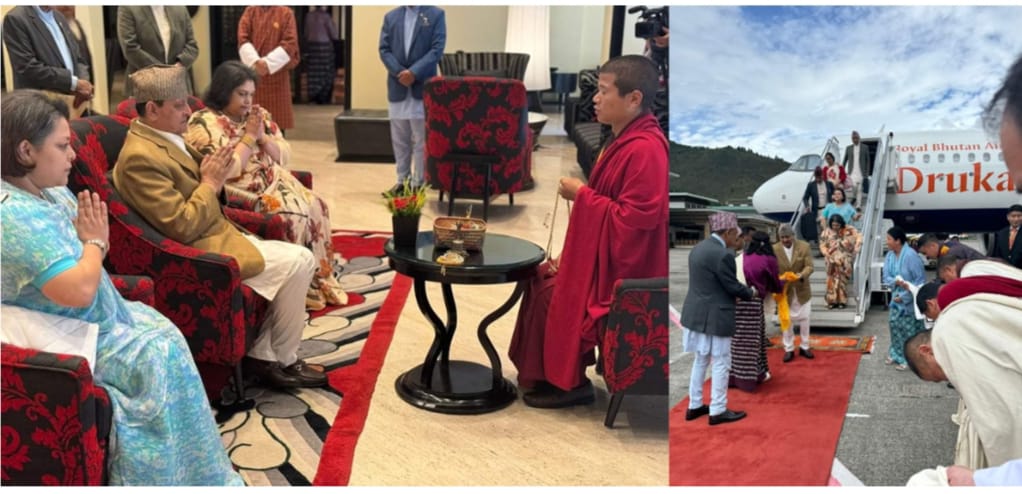 पूर्व राजा शाह, जो गुरुवार को भूटान की ड्रुक एयरलाइंस की उड़ान से निजी यात्रा के लिए रवाना हुए, थिम्पू में उतरे। जहां भूटान की राजकुमारी ने एयरपोर्ट पहुंचकर उनका स्वागत किया है।
