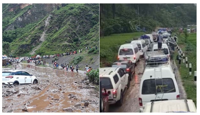 सिंधुली जिला में डुमजा के सुनकोसी ग्रामीण नगर पालिका-1 के पास बाढ़ और भूस्खलन के कारण बीपी राजमार्ग अवरुद्ध होने के बाद गुरुवार से एम्बुलेंस बीच रास्ते में फंसी हुई हैं।
