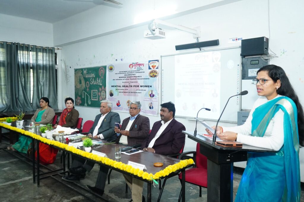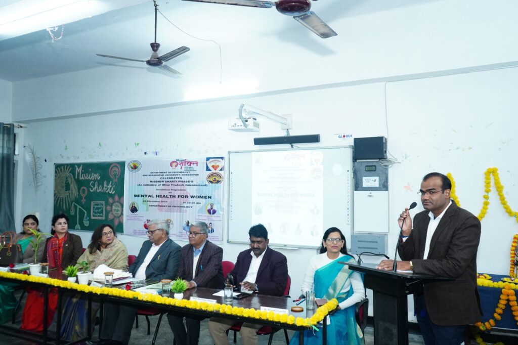 गोरखपुर : मनोविज्ञान विभाग में “महिला एवं मानसिक स्वास्थ्य” विषय पर व्यख्यान का आयोजन मनोविज्ञान विभाग,दीन दयाल उपाध्याय गोरखपुर विश्वविद्यालय, गोरखपुर और मिशन शक्ति फेस 5 के संयुक्त तत्वावधान में 16 दिसम्बर 2024 को “महिला एवं मानसिक स्वास्थ्य” विषय पर व्यख्यान का आयोजन किया गया।