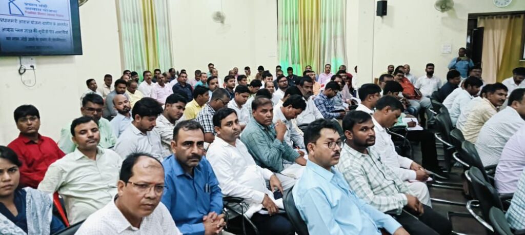 महराजगंज: प्रधानमंत्री आवास योजना-ग्रामीण के अन्तर्गत आवास प्लस 2018 की सूची में पात्र व्यक्तियों का नाम सम्मिलित करने के संबंध में मुख्य विकास अधिकारी महोदय की अध्यक्षता में कार्यशाला आयोजित किया गया। जिसमें परियोजना निदेशक, जिला ग्राम्य विकास अधिकरण, समस्त खण्ड विकास अधिकारी, समस्त सेक्टर प्रभारी एवं समस्त ग्राम पंचायत अधिकारी द्वारा प्रतिभाग किया गया। कार्यशाला में पात्र व्यक्तियों के चयन के संबंध में परियोजना निदेशक, जिला ग्राम्य विकास अभिकरण द्वारा विस्तृत जानकारी दी गयी। मुख्य विकास अधिकारी महोदय द्वारा समस्त सचिव को निर्देशित किया गया कि सर्वेक्षण के दौरान किसी भी दशा में अपात्रों का चयन न किया जाय और यह भी ध्यान रहे कि पात्र परिवार किसी दशा में छुटने न पाये। सर्वे में नाम सम्मिलित करने के लिए किसी भी स्तर पर कोई फार्म भरने की आवश्यकता नहीं है। सर्वे सिर्फ आवास प्लस की एप के माध्यम से ही किया जाएगा। ससस्त ग्राम विकास अधिकारी को निर्देशित किया गया कि प्रधानमंत्री आवास योजना-ग्रामीण की गाईड लाईन का पालन शत प्रतिशत सुनिश्चित किया जाय।