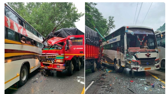 मुगलिन-नारायणगढ़ सड़क खंड पर बस और ट्रक की टक्कर, कई घायल
