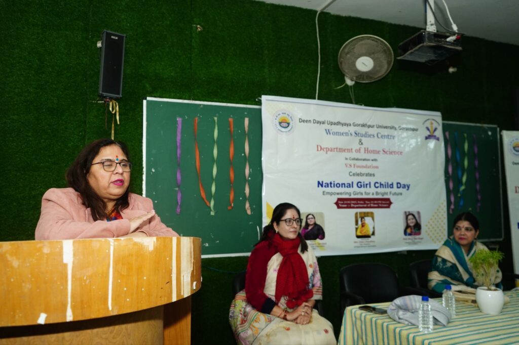 गोरखपुर, विश्वविद्यालय में महिला अध्ययन केंद्र ,वी यस फाउंडेशन एवं  गृह विज्ञान विभाग  के सयुक्त तत्वाधान में   “राष्ट्रीय बालिका दिवस” के उपलक्ष में  जागरूकता कार्यक्रम  का आयोजन किया गया l जिसका विषय “उज्ज्वल भविष्य के लिए लड़कियों को सशक्त बनाना” था। राष्ट्रीय बालिका दिवस लड़कियों के सशक्तिकरण और उनके अधिकारों के प्रति जागरूकता फैलाने का एक महत्वपूर्ण अवसर है। यह हमें याद दिलाता है कि समाज में लैंगिक समानता सुनिश्चित करने और लड़कियों को समान अवसर देने के लिए हम सभी को मिलकर काम करना चाहिए।