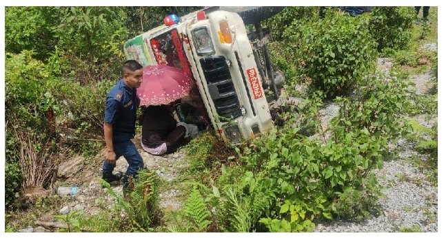 मध्य पहाड़ी सड़क पर रुकुम पश्चिम से रुकुम पूर्व की ओर जा रही पिकअप ऊपर न चढ़ पाने के कारण मुसिकोट-6 और 8 की सीमा पर रिंगदाह में पलट गई।
