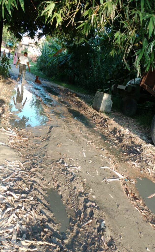गांव में शिवमंदिर के निकट जयगोविंद पटेल के घर से पंचायत भवन/ग्राम सचिवालय होते हुए खरवार टोले से होकर परिषदीय प्राथमिक व जूनियर हाईस्कूल अर्थात कंपोजिट विद्यालय को नारायणी नहर से जोड़ने वाले लगभग दो किलोमीटर लंबे मुख्य मार्ग की दशा सबसे खराब है।जबकि इसी मार्ग से होकर प्रतिदिन आंगनबाड़ी केंद्रों के नौनिहाल सैकड़ों स्कूली बच्चे, शिक्षक एवं खरवार टोले के लोग आवागमन करते हैं। पंचायत भवन पर प्रतिमाह दो बार आयोजित टीकाकरण में गर्भवती महिलाएं व बच्चे भी इसी बदहाल मार्ग से होकर टीका लगवाने जाते हैं।आलम यह है हल्की बरसात में भी गहरा जलभराव हो जाता है और यह सड़क दरिया बन जाता है। खरवार टोले का बड़े गांव से संपर्क टूट जाता है ।गांव के उमेशचन्द त्रिपाठी, देवीशरण पटेल, संत पटेल,छोटेलाल खरवार, मंजेश खरवार,शोभित खरवार,प्रदीप गोंड, रामचंद्र प्रजापति,इंद्रजीत गिरी,चन्द्रिका प्रजापति, जगन्नाथ पांडेय, रूदल दास, बृजेश चौधरी,मनोज पटेल आदि ने बताया कि इस सड़क को बनवाए जाने की कई बार शिकायत की गई परंतु आज तक इस पर कोई कार्रवाई नहीं हुई ।वर्षों पूर्व गांव के अंदर जल जीवन मिशन के अंतर्गत जलकल की पाइप डालने के लिए तोड़ी गई सीसी सड़कें भी गद्धायुक्त हैं और अपनी बदहाली पर आंसू बहा रही हैं ।
