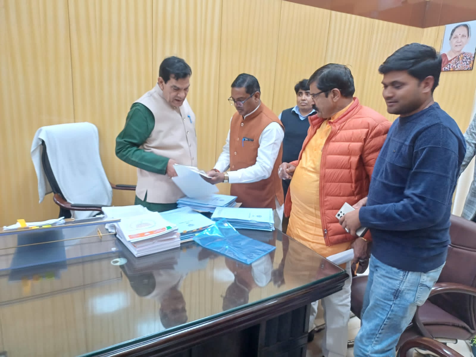 महराजगंज सदर विधानसभा क्षेत्र के नव सृजित नगर पंचायत चौक, नगर पंचायत घुघली और नगर पालिका परिषद महाराजगंज के विकास कार्यों पर विस्तार से चर्चा की और विकास कार्यों को लेकर पत्र भी सौंपा। विधायक ने कहा कि नगर पालिका परिषद महाराजगंज और नगर पंचायत के विस्तार में शामिल नए क्षेत्रों में विकास की दरकार है। हमारे क्षेत्र के दो नगर पंचायत और एक नगर पालिका में समुचित विकास कराया जाय। विधायक ने नगर के विस्तार में शामिल क्षेत्रों में बिजली की समस्या और सीवर लाइन की व्यवस्था को सुदृढ़ कराने की बात कही। विधायक ने कहा कि उत्तर प्रदेश के यशस्वी मुख्यमंत्री योगी आदित्यनाथ जी ने प्रदेश में कई नए नगर पंचायत का सृजन किया है। जिसमें हमारे क्षेत्र का चौक नगर पंचायत भी शामिल है। अभी चौक नगर पंचायत में सी सी रोड, नाली और शुद्ध पेय जल हेतु पाइप लाइन की आवश्यकता है। वहीं नगर पालिका परिषद महाराजगंज में कई वार्ड है जहां जल भराव की समस्या बनी रहती है। उन क्षेत्रों में सड़कों के उच्चीकरण और सीवरेज की आवश्यकता है। ऊर्जा एवं नगर विकास मंत्री माननीय ए के शर्मा जी ने आश्वस्त किया कि जो भी समस्याएं है उनका जल्द समाधान किया जाएगा।इस अवसर पर संजीव शुक्ला ,रमेश पांडेय साथ रहे।