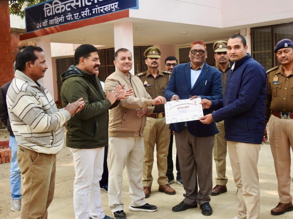 आज दिनांक 04/01/2025 सेनानायक आनन्द कुमार आईपीएस के निर्देशन में मुख्य चिकित्साधिकारी महोदय के सहयोग से, नेताजी सुभाष चंद्रबोस ज़िला चिकित्सालय, गोरखपुर के ब्लड बैंक टीम द्वारा 26वीं वाहिनी पीएसी गोरखपुर में ब्लड बैंक इंचार्ज वरिष्ठ चिकित्सक डॉ० जय प्रकाश सिंह व टीम द्वारा ब्लड डोनेशन कैम्प का आयोजन किया गया। जिसमें पुलिस कर्मियों द्वारा बढ़कर चढ़कर हिस्सा लेकर जनमानस के लिए रक्त दान किया गया। इस कैम्प के माध्यम से सूबेदार मेजर धर्मेंद्र सिंह, मीडिया सेल शोएब रजा सहित अन्य कर्मियों ने रक्तदान किया।