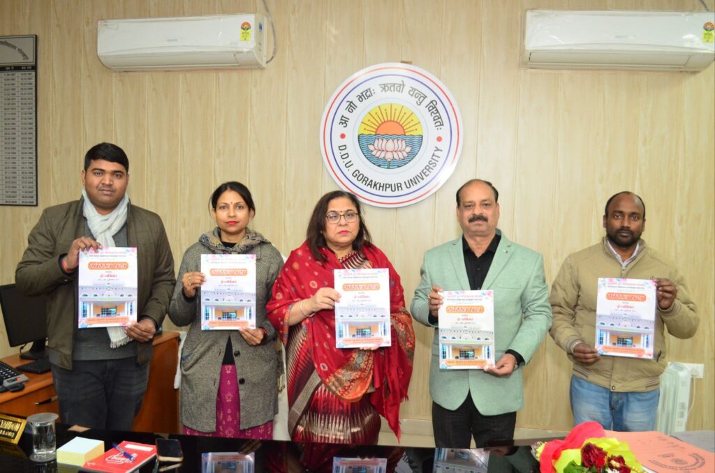 गोरखपुर : विश्वविद्यालय, गोरखपुर स्थित महायोगी गुरु श्रीगोरक्षनाथ शोधपीठ की त्रैमासिक ई-पत्रिका गोरख पथ के द्वितीय वर्ष के चतुर्थ अंक का विमोचन प्रो. पूनम टण्डन, मा. कुलपति, दीनदयाल उपाध्याय गोरखपुर विश्वविद्यालय, गोरखपुर के द्वारा किया गया। कुलपति प्रो. पूनम टंडन ने पिछले वर्ष से लगातार प्रकाशित हो रही इस पत्रिका की सराहना करते हुए कहा कि यह पत्रिका शोधपीठ की गतिविधियों का महत्वपूर्ण दस्तावेज है। शोधपीठ के उपनिदेशक डा. कुशलनाथ मिश्र ने बताया कि इस अंक में अक्टूबर, नवम्बर एवं दिसम्बर माह में शोधपीठ में हुये कार्यक्रमों को विस्तार से समेटा गया है। शोधपीठ के शैक्षणिक एवं शोध गतिविधियों से युक्त इस पत्रिका को विश्वविद्यालय एवं शोधपीठ के आधिकारिक वेबसाइट पर पढ़ा जा सकता है। इस अवसर पर ई-पत्रिका के सम्पादक महायोगी गुरु श्रीगोरक्षनाथ शोधपीठ के उप निदेशक डॉ. कुशलनाथ मिश्र, सह सम्पादक शोधपीठ के सहायक निदेशक डॉ. सोनल सिंह, रिसर्च एसोसिएट डॉ. सुनील कुमार एवं वरिष्ठ शोध अध्येता डॉ. हर्षवर्धन सिंह उपस्थित रहे।