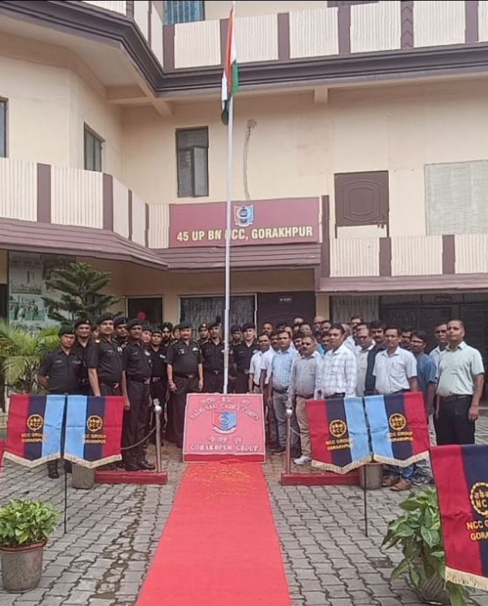 गोरखपुर। गोरखपुर 15 अगस्त आजादी के 78 वें वर्षगांठ के शुभ अवसर पर एनसीसी ग्रुप मुख्यालय गोरखपुर में ग्रुप ट्रेनिंग ऑफिसर लेफ्टिनेंट कर्नल के० बी० चन्द द्वारा ध्वजारोहण किया गया, तथा ग्रुप कमांडर गोरखपुर के तरफ से सभी को स्वतंत्रता दिवस की बधाई दिए। ध्वजारोहण के बाद वहां उपस्थित सैन्य अधिकारियों कर्मचारियों और राज्य कर्मचारीयों एनसीसी कैडेट्स को संबोधित करते हुए ले० कर्नल चन्द ने कहा कि हमारी आजादी देश के लाखों सेनानियों के बलिदान त्याग और तपस्या के बल पर मिली है, आजादी की लड़ाई के समय हमारे देश के स्वतंत्रता सेनानियों ने यह सपना देखा था की भारत आजाद होकर एक समृद्ध और सशक्त राष्ट्र बने। आज हम राष्ट्र प्रथम की भावना से देश के लिए कार्य कर यदि अपने देश को समृद्ध और सशक्त बनाते हैं तो यही उन सेनानियों के लिए सच्ची श्रद्धांजलि होगी।ले० कर्नल चन्द ने ग्रुप के सभी एनसीसी कैडेट्स से अपील किया कि वह जिस भी क्षेत्र में अपना कैरियर बनाएं वहीं से राष्ट्र को समृद्ध और सशक्त बनाने में अपना संपूर्ण योगदान दें।