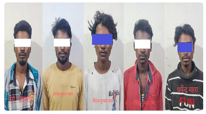 डीएसपी बीरेंद्र कुमार पासवान ने बताया कि गोलबाजार के 27 वर्षीय संतोष कुमार महरा, 28 वर्षीय रोहित कुमार महरा, 21 वर्षीय धर्मेंद्र महरा, 19 वर्षीय धीरज कुमार राम और 20 वर्षीय मोहम्मद जमशेद नगर पालिका-13, डंगराहा टोल को हत्या के आरोप में गिरफ्तार किया गया।