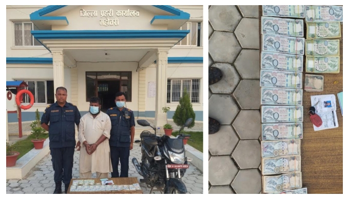 महोत्तरी जिला पुलिस प्रवक्ता व डीएसपी संतुलाल प्रसाद जयसवाल ने बताया कि पुलिस टीम ने मनराशिस्वा-6 स्थित भोलही चौक पर मोटरसाइकिल संख्या पी 02-005 पी 5995 पर सवार हसमत की तलाशी ली तो रुपये बरामद हुए ।