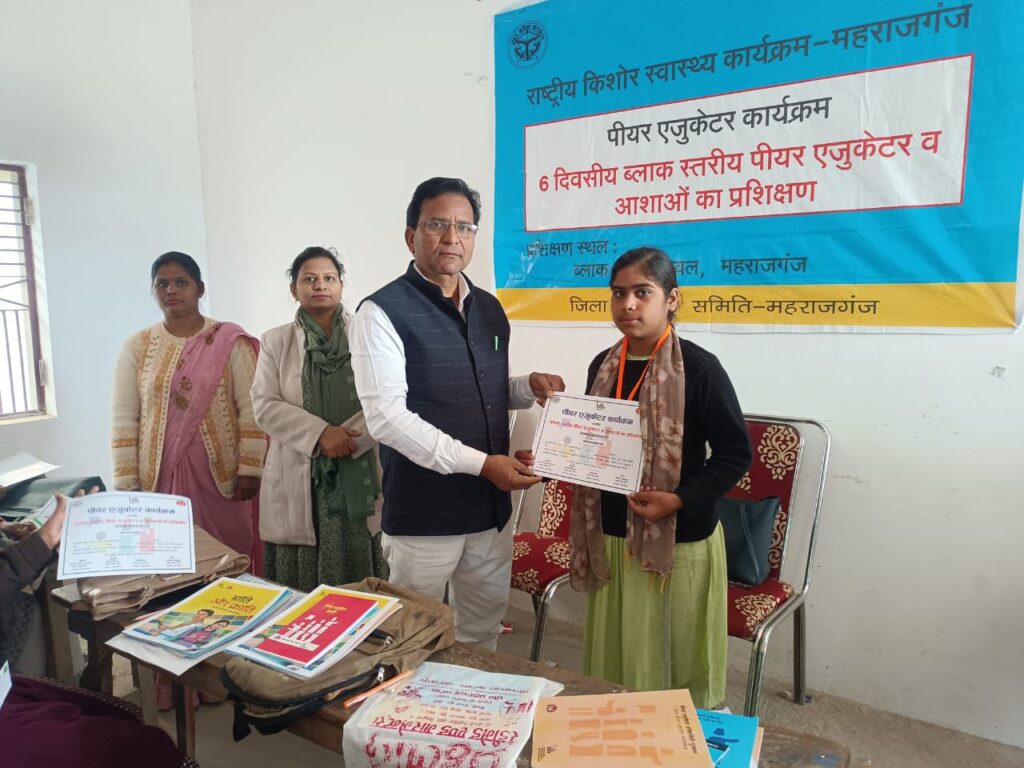 महराजगंज जनपद अन्तर्गत नगर पंचायत परतावल के परतावल ब्लॉक अन्तर्गत राष्ट्रीय किशोर स्वास्थ्य कार्यक्रम के में कुल 1000 पीयर एजुकेटर एवं 250 आशाओं ने 6 दिवसीय प्रशिक्षण, विभिन्न चरणों में प्रक्षिक्षण प्राप्त किया यह प्रशिक्षण 20 जनवरी 2025 से शुरू होकर आज 15 फरवरी 2025 तक चला।