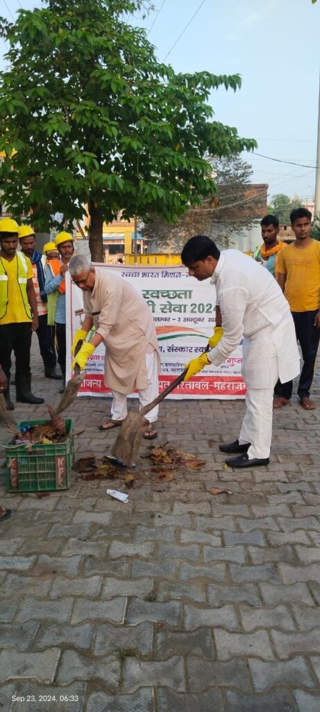 महराजगंज जनपद के विधानसभा क्षेत्र पनियरा में स्वच्छता ही सेवा पखवाड़ा के तहत आज विधायक ज्ञानेंद्र सिंह ने प्रातः उठकर नगर पंचायत परतावल के वार्ड नं० 15 (महंत अवैद्यनाथ नगर) में स्थित सामुदायिक स्वास्थ्य केन्द्र के परिसर में झाड़ू लगाकर, कूड़ा करकट हटाया और स्वच्छता के प्रति नगरवासियों को जागरूक किया।
