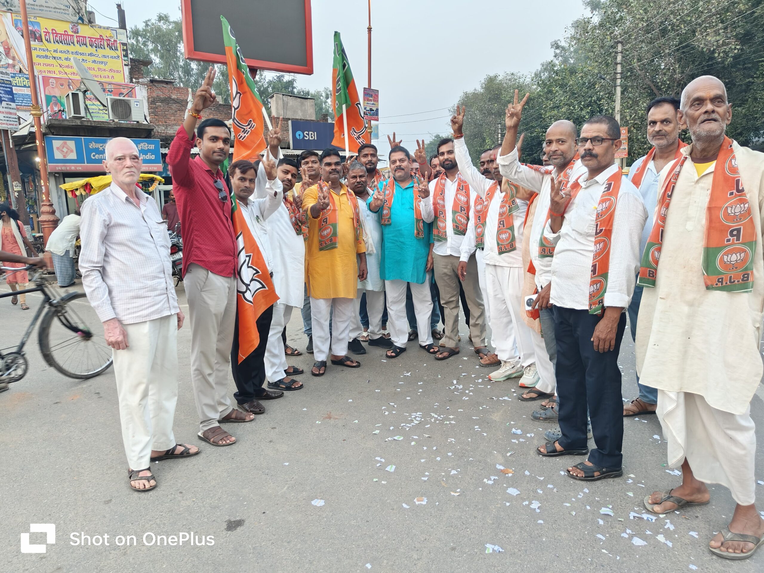 बांसगांव चौराहे पर भाजपा कार्यकर्ताओं ने जीत का जश्न मनाया