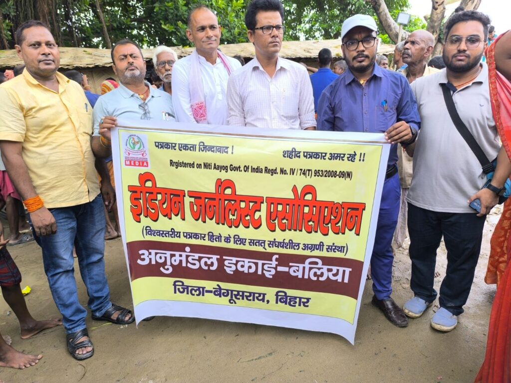 इंडियन जर्नलिस्ट एसोसिएशन बेगूसराय के पदाधिकारीयो ने बलिया के दियारा क्षेत्र में आई बाढ़ की विभिषिका को देखते हुए बाढ़ पीड़ितों की मदद के लिए बढ़ाया हाथ। इसके तहत इंडियन जर्नलिस्ट एसोसिएशन बेगूसराय के द्वारा स्वंय एवं जन सहयोग से सनहा गोरगामा बांध पर शरण लिए हुए बाढ़ पीड़ितों के बीच राहत सामग्री का वितरण किया गया। इस संबंध में इंडियन जर्नलिस्ट एसोसिएशन बलिया अनुमंडल अध्यक्ष प्रमोद कुमार चौधरी ने बताया कि बाढ़ पीडितों की सहायता के लिए सहकारिता बैंक के अध्यक्ष नरेंद्र सिंह एवं उपाध्यक्ष कमल किशोर सिंह जी का विशेष योगदान रहा। इंडियन जर्नलिस्ट एसोसिएशन के पदाधिकारीयो ने बाढ़ पीड़ितों के बीच चूड़ा गुड़ एवं बिस्किट का वितरित किया।