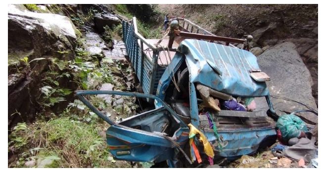 ट्रक क्रमांक बीए 5 बी 1281, जो धूलिखेल से पांचखाल जा रहा था, गुरुवार दोपहर अनियंत्रित हो गया और लगभग 70 मीटर नीचे गिर गया।