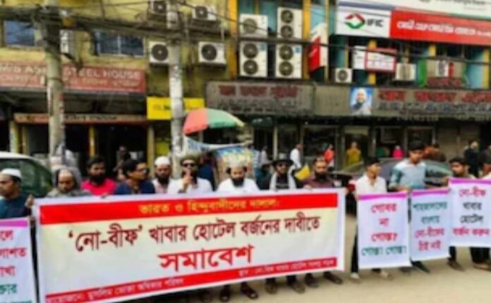 रतन गुप्ता उप संपादक —–बांग्लादेश की राजधानी ढाका में इस्लामी कट्टरपंथियों ने एक विवादास्पद मांग करते हुए कहा है कि सभी रेस्तरां में गोमांस परोसा जाए, अन्यथा उन्हें बंद कर दिया जाएगा.गोमांस खिलाओ नहीं तो होटल बंद करो.. बांग्लादेश में कट्टरपंथियों का नया फर्मान, भारत के लिए कही चुभने वाली बात बांग्लादेश की राजधानी ढाका में इस्लामी कट्टरपंथियों ने एक विवादास्पद मांग करते हुए कहा है कि सभी रेस्तरां में गोमांस परोसा जाए, अन्यथा उन्हें बंद कर दिया जाएगा. यह फरमान ‘मुस्लिम कंज्यूमर राइट्स काउंसिल’ नामक संगठन ने जारी किया. इस संगठन का दावा है कि जो होटल और रेस्तरां बीफ नहीं परोस रहे हैं, वे इस्लामी विचारधारा के खिलाफ काम कर रहे हैं.हिंदू मान्यताओं को नीचा दिखाने की कोशिशइस संगठन के नेता मुहम्मद आरिफ अल ख़बीर ने सार्वजनिक रूप से कहा कि इस्लाम में गोमांस खाना अनिवार्य नहीं है, लेकिन हिंदू मान्यताओं को नीचा दिखाने और इस्लाम के प्रति अपनी निष्ठा साबित करने के लिए यह कदम उठाना जरूरी है. उन्होंने गोमांस को इस्लामिक पहचान का प्रतीक बताते हुए कहा कि इसका बहिष्कार करने वाले रेस्तरां पर कार्रवाई होनी चाहिएढाका में रैली और नारेबाजीमुस्लिम कंज्यूमर राइट्स काउंसिल ने अपनी मांगों के समर्थन में ढाका के बंगशाल इलाके में रैली का आयोजन किया. रैली के दौरान प्रदर्शनकारियों ने अल रज्जाक नामक एक होटल के सामने नारेबाजी की और कहा कि जिन रेस्तरां में गोमांस नहीं परोसा जाता, वे हिंदुत्व और भारत के एजेंट हैं. उन्होंने जोर देकर कहा कि ऐसे रेस्तरां का बहिष्कार किया जाए और उन्हें बंद कर दिया जाए.कट्टरपंथियों का तर्कप्रदर्शनकारियों ने अपनी मांग को लेकर कहा कि गोमांस परोसने से इनकार करने वाले रेस्तरां न केवल इस्लाम विरोधी हैं, बल्कि ये मुस्लिम समाज के अधिकारों का उल्लंघन भी कर रहे हैं. कट्टरपंथियों ने चेतावनी दी है कि यदि उनकी मांग पूरी नहीं की गई, तो वे इन रेस्तरां को पूरी तरह बंद करा देंगे.भारत के लिए चुभने वाली बातइस घटना के दौरान कई बार भारत और हिंदुत्व का उल्लेख किया गया. कट्टरपंथियों ने आरोप लगाया कि गोमांस नहीं परोसने वाले रेस्तरां हिंदुत्व और भारतीय प्रभाव के एजेंट हैं. भारत का नाम लेकर इस्लामी कट्टरपंथियों ने यह साबित करने की कोशिश की कि उनकी लड़ाई केवल स्थानीय मुद्दों तक सीमित नहीं है, बल्कि इसमें धार्मिक और राजनीतिक नफरत भी शामिल है.क्या है इसका प्रभाव?बांग्लादेश में इस तरह की कट्टरपंथी घटनाएं धार्मिक सहिष्णुता और सामाजिक सद्भाव पर गंभीर सवाल खड़े करती हैं. भारत के साथ इसके धार्मिक और सांस्कृतिक प्रभाव को जोड़ने से दोनों देशों के संबंधों पर भी असर पड़ सकता है. यह घटना सिर्फ एक धार्मि