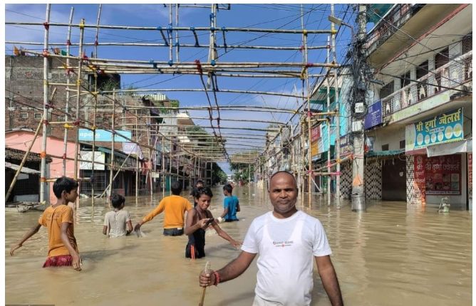 बागमती और लालबकैया नदी में आई बाढ़ के बाद बांध कटने से गौर मुख्यालय समेत इलाका जलमग्न हो गया है ।