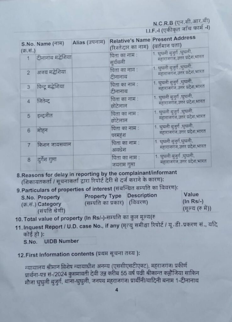 महराजगंज जनपद के थाना घुघली अन्तर्गतकुछ दिन पहले प्रधानी चलाने को लेकर उपजे रंजिश के चलते दीनानाथ मद्धेशिया तथा प्रधान कुसमावती देवी से आपसी विवाद हो गया था उस विवाद में दीनानाथ मद्धेशिया पुत्र सूर्यवली और अजय मधेशिया व पिंटू मद्धेशिया तथा जितेंद्र व इंद्रजीत पुत्र छोटे लाल मोहन पुत्र परमहंस , किशन जायसवाल पुत्र अवधेश ,दुर्गेश पुत्र जयराम गुप्ता निवासी घुघूली बुजुर्ग ये सभी लोग कुसमावती से विवाद कर रहे थे गाली गुप्ता आदि दे रहे थे तभी इनको बचाने के लिए इनका बेटा कमलेश भी मौके पर आ गया था जिससे कुसमावती ने बताया कि हमको और हमारे लड़के कमलेश को लोग मारपीट दिए जिसके कारण में कमलेश का हाथ फैक्चर हो गया और सिर में भी काफी चोट आई हुई थी जिसका एक वीडियो सोशल मीडिया में काफी वायरल हुआ था उलटे मेरे बेटे कमलेश के ऊपर ही मुकदमा दर्ज हो गया था उसके बाद कुछ दिनो के बाद कमलेश को जमानत कोर्ट से मिल गई है लेकिन कुसमावती देवी अपने विरोधियों के विरुद्ध मुकदमा दर्ज कराने के लिए दौड़ती रही लेकिन इनको स्थानीय पुलिस ने इनका मुकदमा दर्ज नही किया गया तो उसके बाद पुलिस अधीक्षक महाराजगंज को प्रार्थना पत्र दिया गया था वहां भी कोई कार्रवाई न होने पर थक हार कर महराजगंज दीवानी न्यायालय में 156 /3 के तहत मुकदमा दर्ज कराने हेतु दीवानी न्यायालय में वाद दायर किया गया था लेकिन वहां भी विलंब होने की स्थिति होने में कुसुमावती देवी ने हाई कोर्ट की तरफ अपना रास्ता रुख किया जहां पर समय सीमा निर्धारित अवधि के तहत हाईकोर्ट ने आदेश के अनुपालन में दीवानी न्यायालय महाराजगंज ने परिवाद पत्र संख्या 53/2024 से आदेश किया कि कुसमावती के प्रार्थना पत्र पर मुकदमा दर्ज कर किया जाए उसके बाद न्यायलय के आदेश पर घुघुली पुलिस ने एफआईआर 370/2024एससी एसटी 3(1) ध के अलावा 147, 148, 323 , 504, 506, 354, 427, 392 आईपीसी की धाराओं में दिनांक 26/9/2024 को मुकदमा दर्ज कर दिया गया है अब मुकदमा दोनों तरफ से हो गया है अब यह लगता हैं की मुकदमा क्रास केस के रूप में हो गया है अब आरोप प्रत्यारोप एक दुसरे के ऊपर लगाया जा रहा है और अब देखना है कि इसमें कौन दोषी और कौन निर्दोष है अब विवेचना के बाद ही पता चलेगा और आने वाला वक्त ही बताएगा