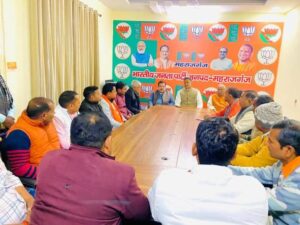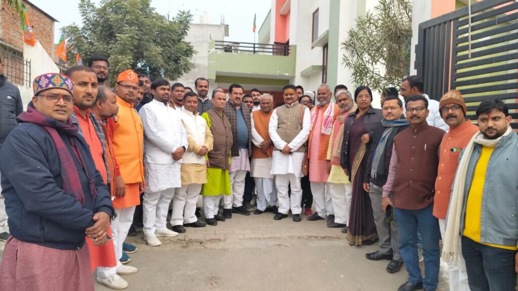 आज दिनांक 09.01.2025 को भारतीय जनता पार्टी जिला कार्यालय महराजगंज में जिलाध्यक्ष पद हेतु नामांकन दाखिल किया गया जिसमें जिला चुनाव अधिकारी ओंमकार केसरी के पास कुल 31 लोगों ने पर्चा दाखिला किया जिसमें दो लोग पर्चा वापस ले लिए बच्चे 29 में से 15 प्रांतीय परिषद के लिए नामांकन किया जो बच्चे 14 लोग जिलाध्यक्ष पद हेतु नामांकन किया दाखिला के दौरान जिला प्रभारी राम जियावन मौर्य व जिला सह चुनाव अधिकारी कृष्ण गोपाल जायसवाल तथा जिला महामंत्री राजेश यादव भी मौजूद रहे। जनप्रतिनिधियों में पनियारा विधायक ज्ञानेंद्र सिंह, सदर विधायक जय मंगल कनौजिया, नौतनवा विधायक रिषी त्रिपाठी की भी उपस्थित रही आवेदकों और समर्थकों का ताता लगा हुआ था।