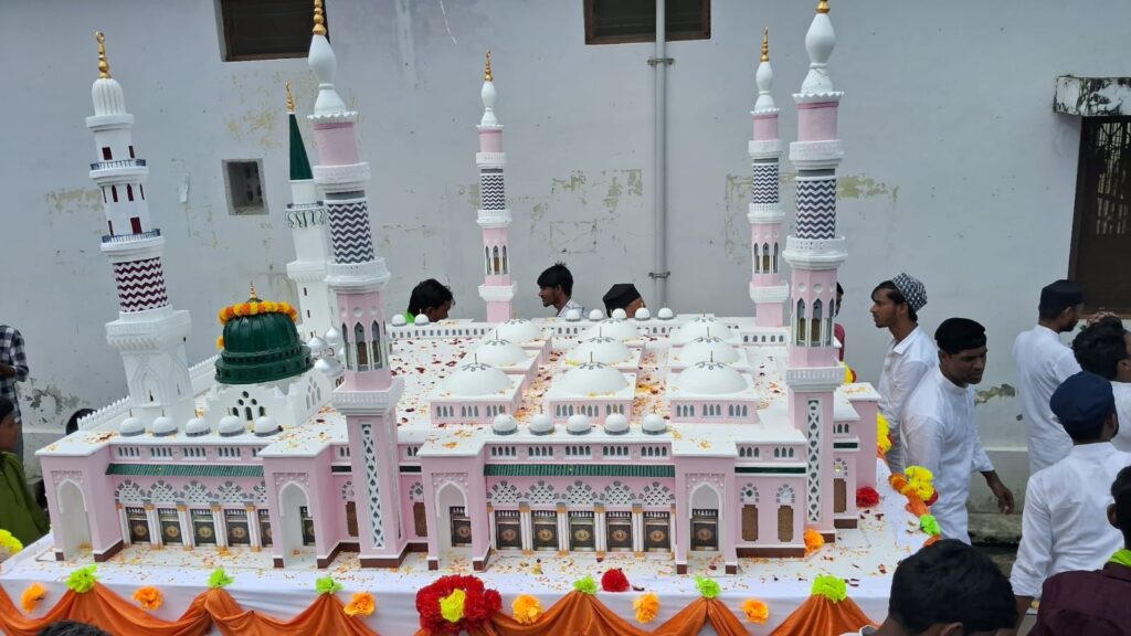 बताते चले महाराजगंज जनपद के परतावल ब्लॉक के कई गांव का जुलूस बड़े धूमधाम से निकलता है।जिसमें कोटवा,सिरसिया मलमलिया, पिपरिया,छपिया,परसा बुजुर्ग, बुधरामपुर, पिपरा जादू,महदेवा, लक्ष्मीपुर जरलहिया, नगर पंचायत परतावल,बरहरा बड़ाईपार,पकड़ी दीक्षित,महम्मदा सहित कई गांव के लोग जुलूस में शामिल होकर सरकार की आमद मरहबा सरकार की आमद मरहबा नारे तकरीर अल्लाह हू अकबर का विर्द करते हुए अपने सबसे बड़े पैगंबर का जन्मदिन मनाते हैं जुलूस में आकर्षण का केंद्र गुंबदे खजरा मदीना कि झाकी रहा जुलूस में तकरीबन 10 हजार लोग शामिल हुए जुलूस के दौरान श्यामदेउरवा पुलिस चप्पे चप्पे पर मुस्तैद दिखी वही जुलूस को शांतिपूर्ण ढंग से संपन्न कराने के लिए काफी मेहनत किया इस दौरान क्षेत्र में कहीं अप्रिय घटना घटने की सूचना नहीं मिली जुलूस में शामिल शहंशाह आलम, कैफ सिद्दीकी, बब्बू सिद्दीकी,दिलशाद आलम,लाल मोहम्मद,गुफरान आलम, सिब्बू, ताहिर सिद्दीकी सहित हजारों लोग जुलुस में शामिल रहे!