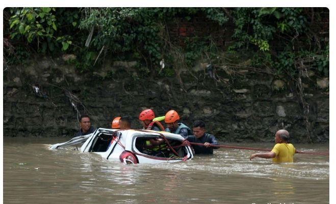 काठमाण्डौ,नेपाल – हनुमानथान और थापागांव को जोड़ने वाले पुल से गिरी टैक्सी सोमवार को थापथली में यूएन पार्क के पास मिली।